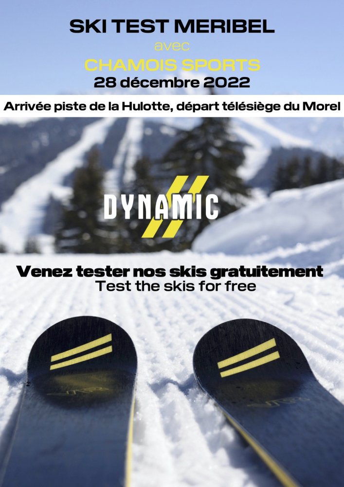 Votre magasin de ski à Méribel organise avec la marque Dynamic un ski test à l'arrivée de la piste de la Hulotte et au Départ du télésiège de Morel.